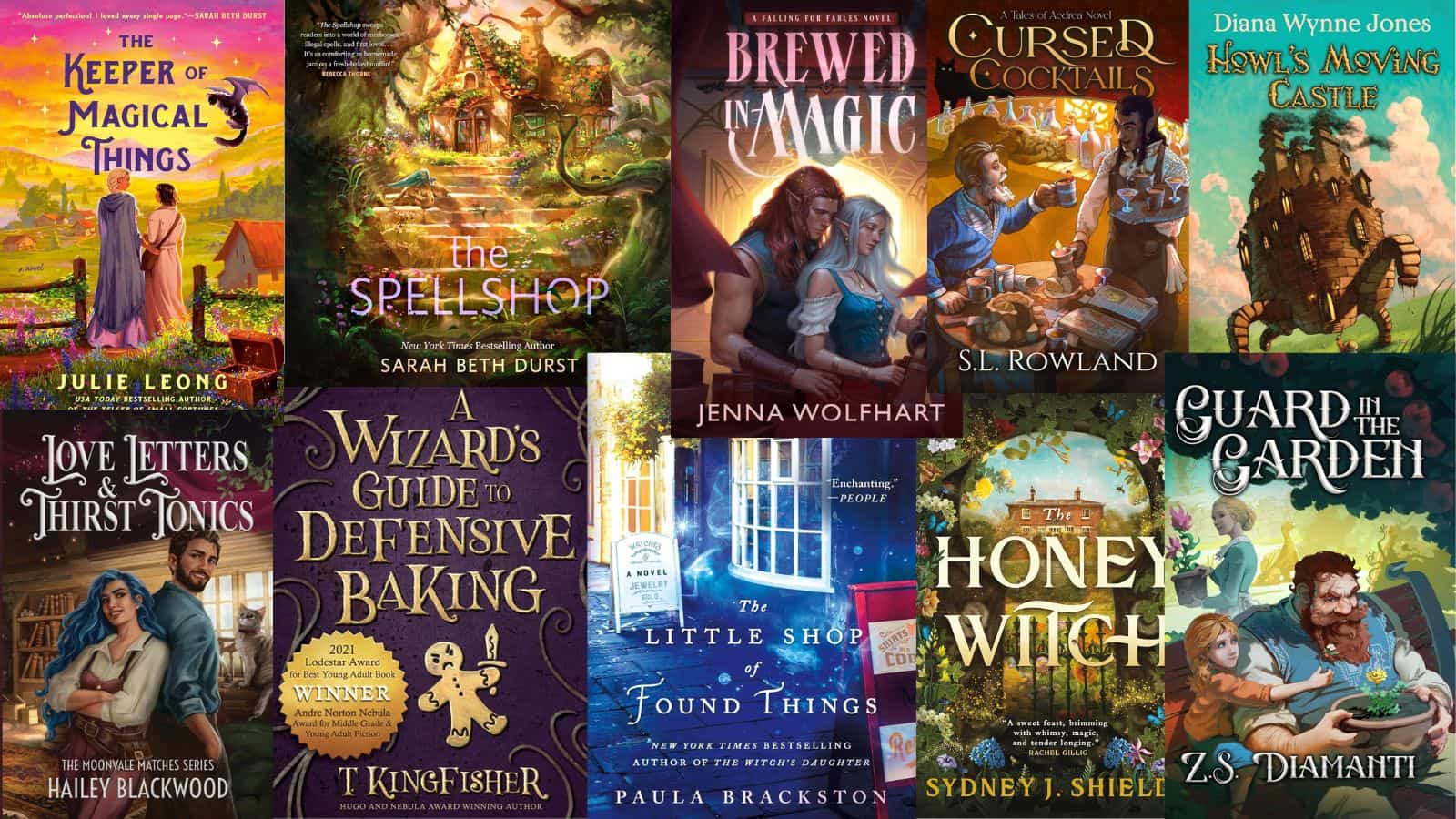 Twenty cozy fantasy books grouped by mood, from witchy cottages and magical tea shops to spicy romantasy, to help you find exactly the story you're craving.