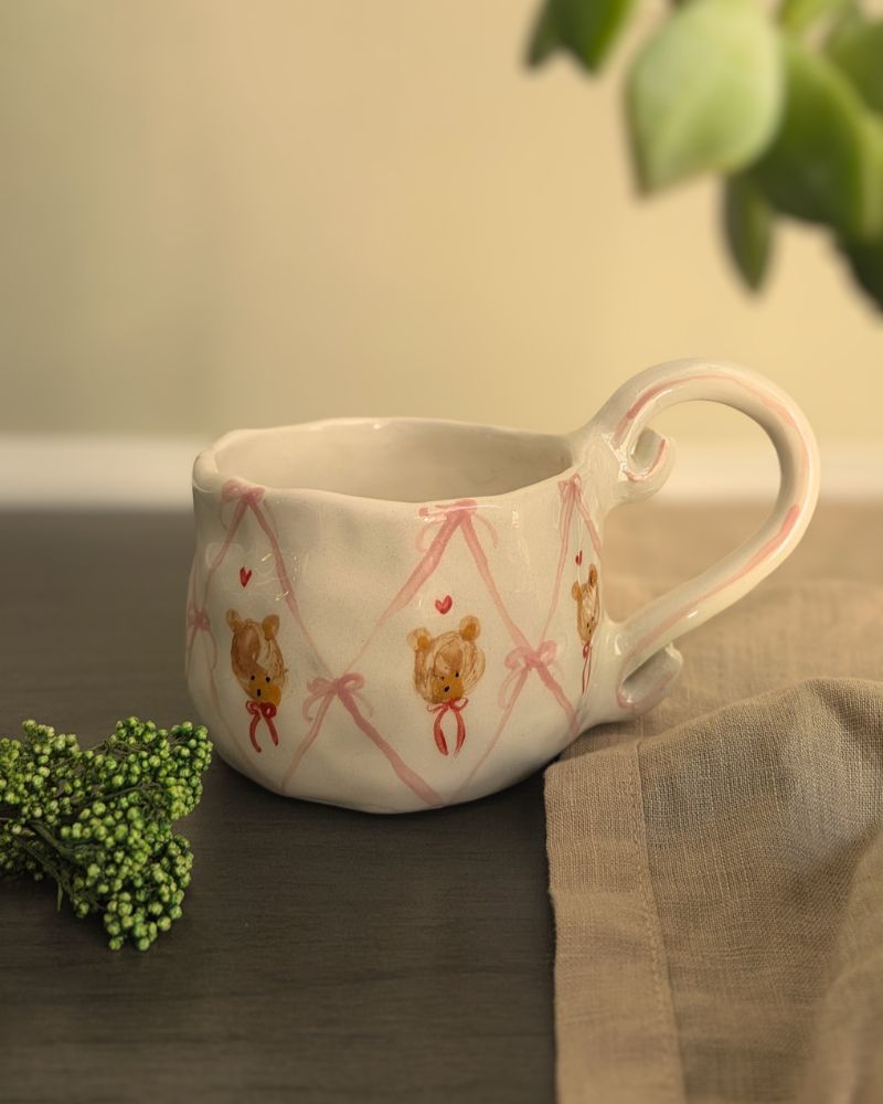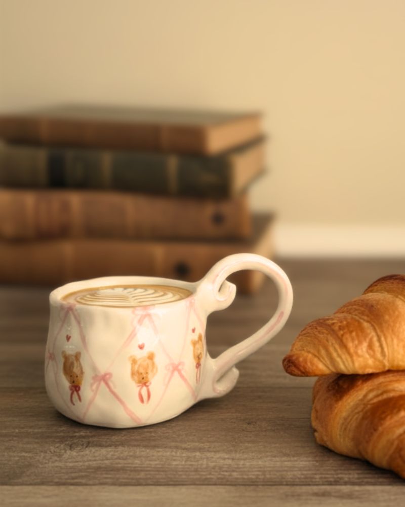 Cozy vibes: A slow morning with something warm in your hands, sunlight filtering in, and nowhere you need to be. This mug feels like a small, comforting ritual. Softly shaped, easy to hold, and quietly charming. The delicate bows and tiny teddy bears add just a hint of sweetness, like a memory you can’t quite place but don’t want to lose.